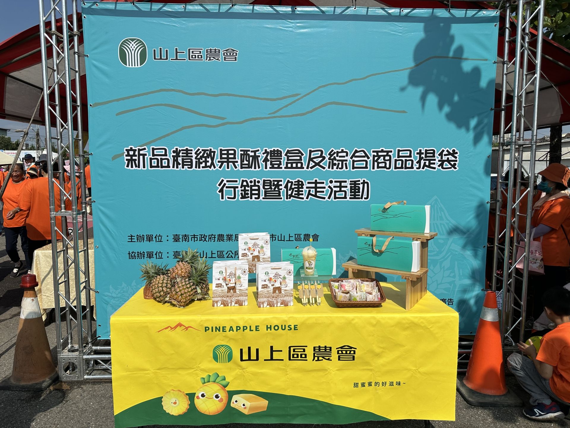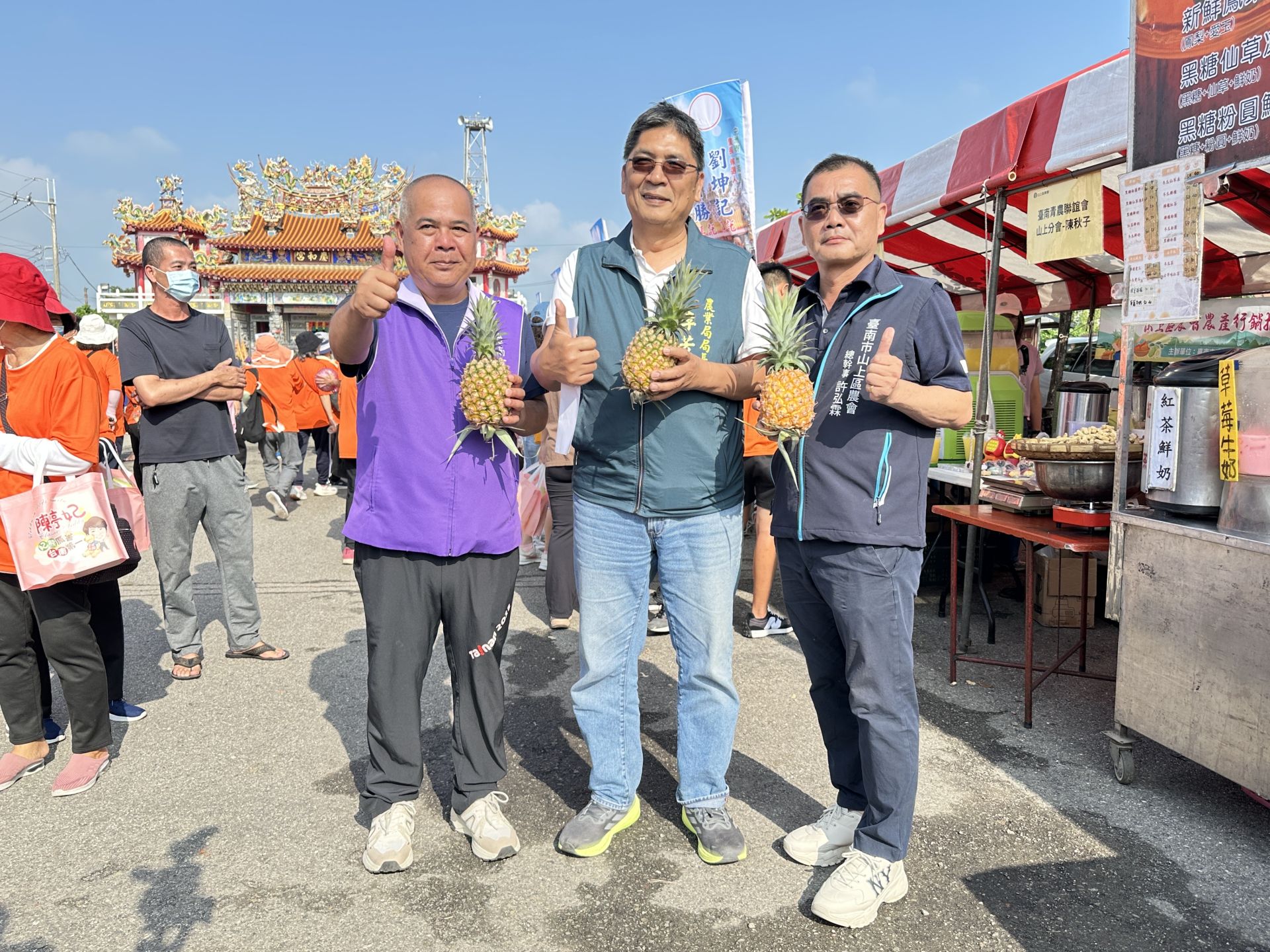 為推廣在地優質農產並提升品牌形象,山上區農會於今(26)日到安南區的五塊寮慶和宮盛大舉辦「新品精緻果酥禮盒及綜合商品提袋行銷暨健走活動」,結合鳳梨酥新品發表、青年農民展售及千人健走活動,吸引眾多民眾熱情參與,現場氣氛熱絡。