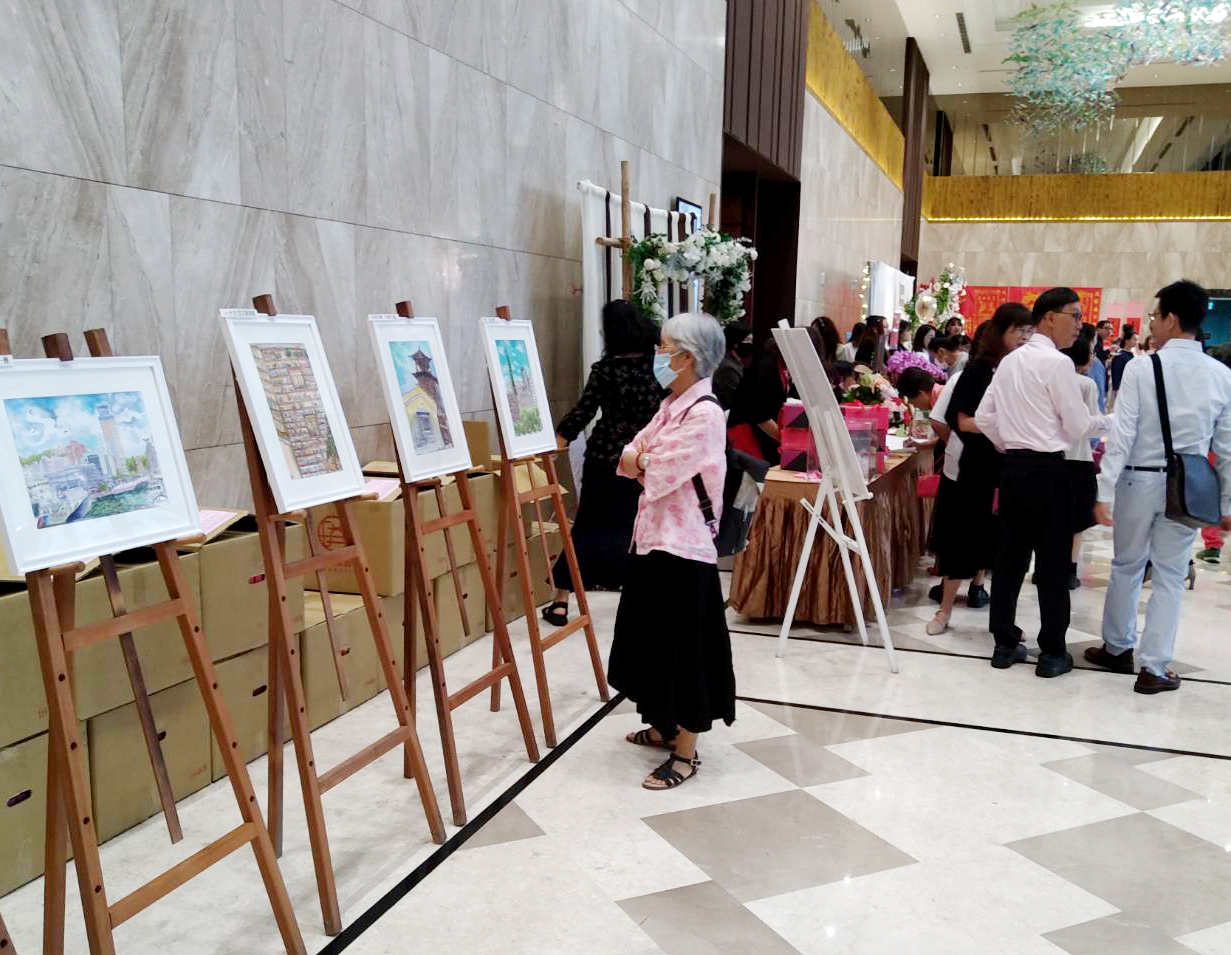 ▲辦喜宴做公益 宣傳來賓捐發票、畫作義賣 幫助創世植物人。(創世 提供)