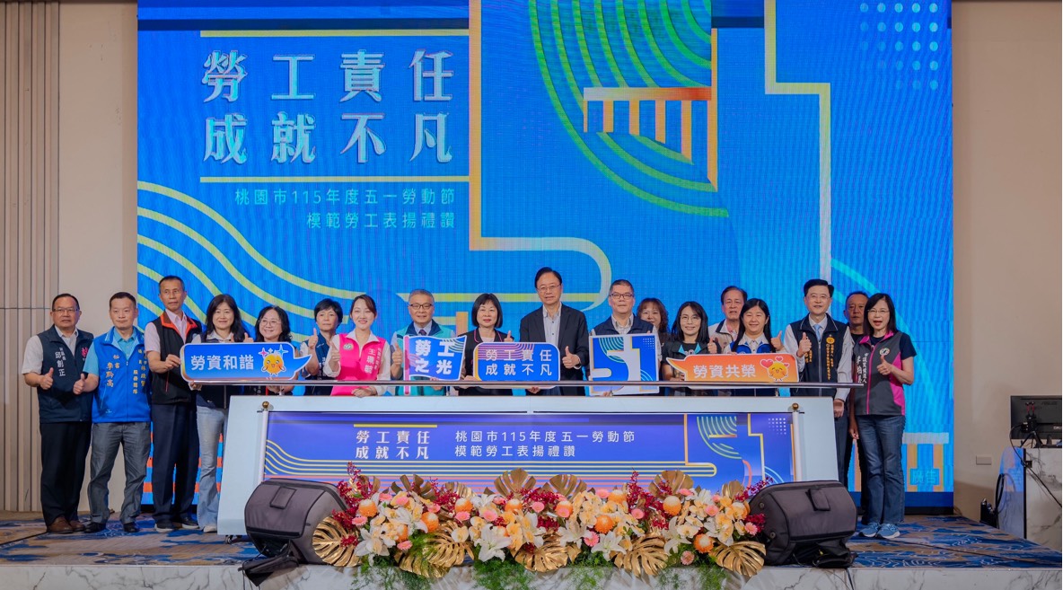 【視傳媒記者袁慧心/桃園報導】桃園市長張善政(27)日上午前往桃園區,出席「桃園市115年度五一勞動節模範勞工表揚」活動,並頒發獎狀表揚383位模範勞工。張市長表示,桃園市為全臺重要工商重鎮,工業產值全國第一,市府將持續擴編相關預算,強化勞工權益保障,打造更加幸福宜居的城市。