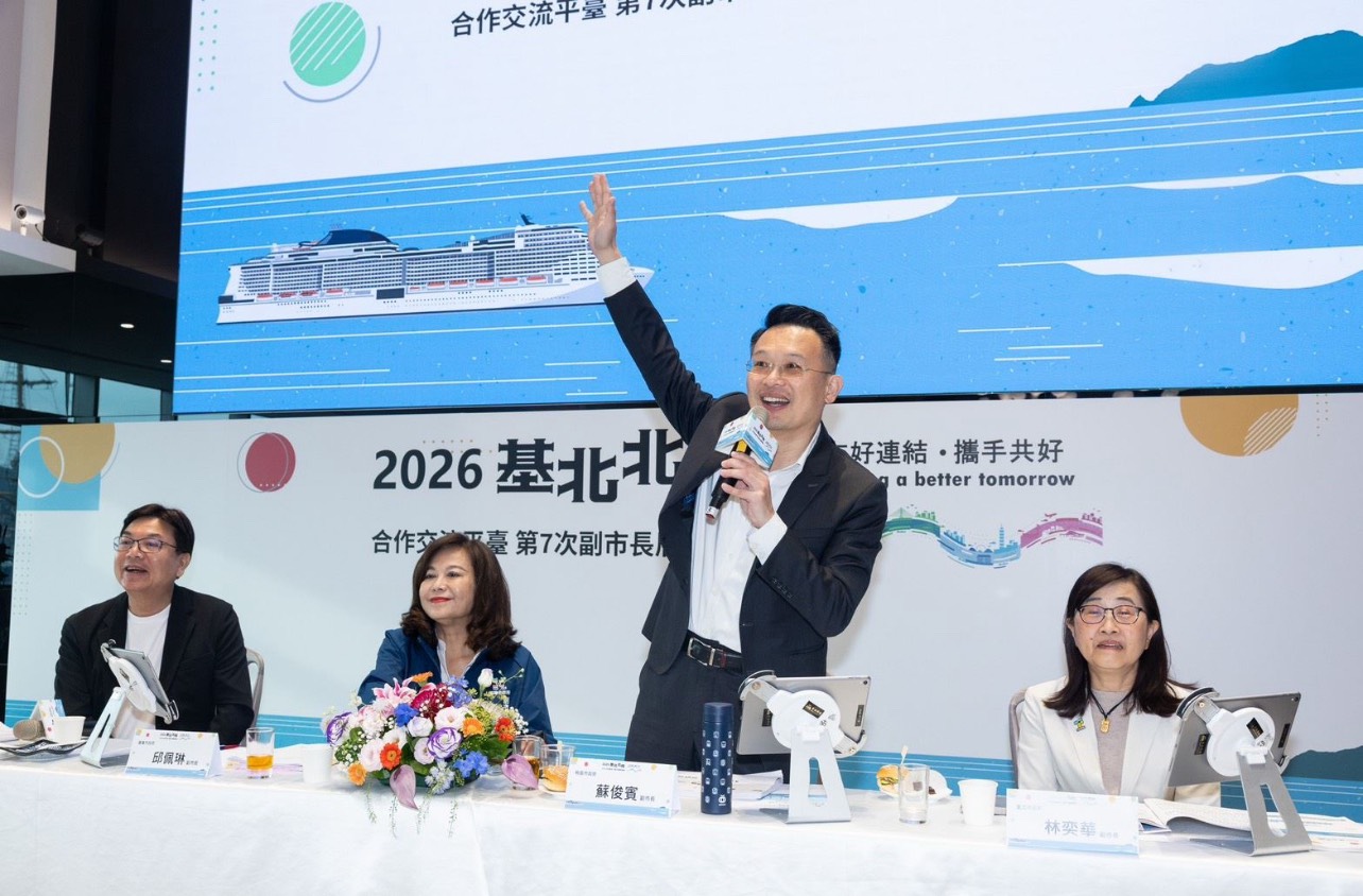 【視傳媒記者袁慧心/桃園報導】基北北桃合作交流平台第7次副市長層級會議(27)日於基隆舉行,由桃園市副市長蘇俊賓、基隆市副市長邱佩琳、新北市副市長劉和然及臺北市副市長林奕華共同主持,四市就跨域合作成果及未來推動方向進行交流。回顧平台推動成果,自成立以來已累積155項合作提案,其中100項已完成,有55項合作案持續推動中,合作已逐步從制度對齊與資訊共享,轉化為跨域議題的實際行動,讓政策影響從行政框架延伸至市民日常生活。