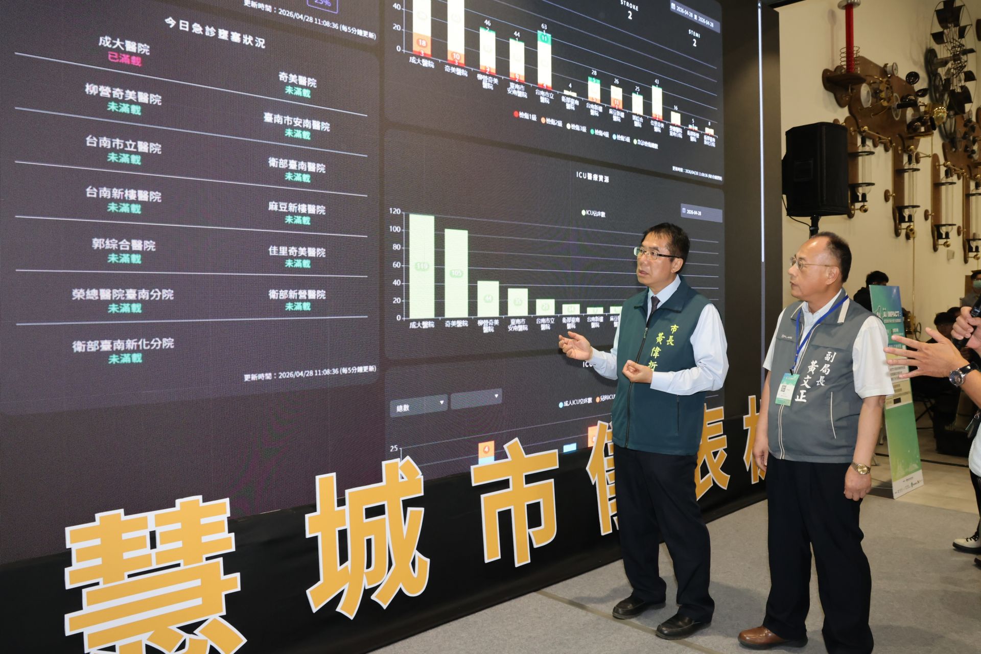 ▲市長黃偉哲參觀智慧城市應用展示,透過數據儀表板了解醫療資源與城市治理運作,呈現AI於公共服務領域的實際應用成效。(南市府 提供)