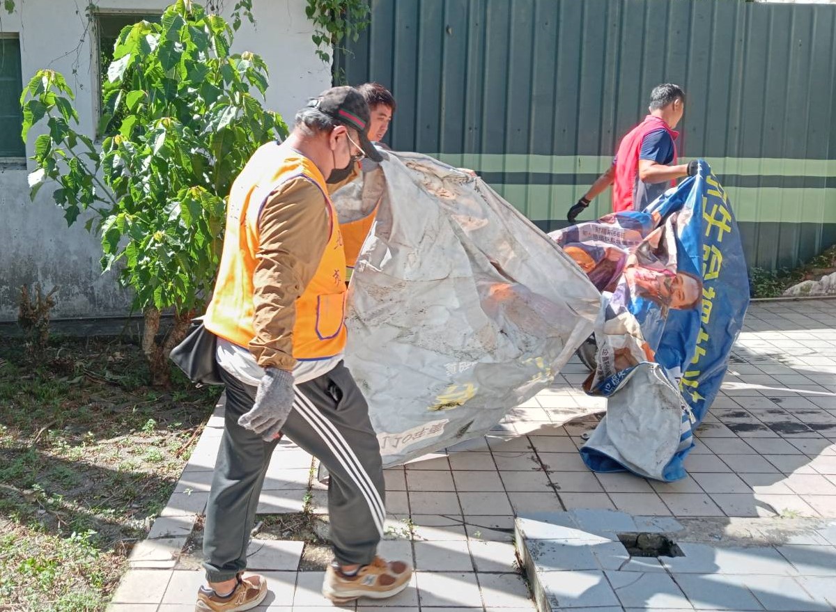 ▲宗婆婆住家受到凱米颱風肆虐,新北市榮欣志工協助宗婆婆掃環境清運垃圾。(圖/新北市榮民服務處提供)