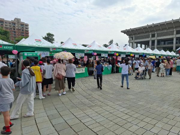 現場設有多元活動攤位,包括特色美食、五大志業闖關體驗、兒童寫生及摸彩活動,大人小孩歡笑聲不斷。義賣區提供愛心商品與在地小農美食,如手作麻糬、人氣厚片、愛玉、貝果及古早味粿點心等,香氣四溢、人潮絡繹,讓民眾在歡樂中行善、在慈愛中傳遞幸福。