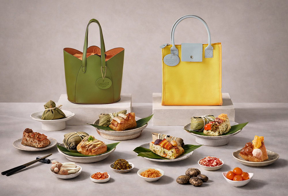 另一款「暖陽精選禮袋」則以明亮色系結合防潑水機能設計,呈現輕盈節慶氛圍,每袋內含去年電商熱賣、今年回歸飯店通路的「傳香無錫燒肉粽」兩顆,搭配金絲蛋黃菜飯粽兩顆,以及松露蕈菇五米素粽與桂圓蜜薯芋泥粽各一顆,售價1,398元。