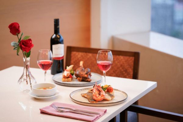 圖5:Cozzi THE Roof餐廳於2月14日至2月15日晚餐時段規劃「心動餐桌 甜蜜共饗夜」餐飲活動,精選情人節套餐1,000元起,加購指定紅酒2杯享優惠價300元。圖/和逸飯店高雄中山館提供