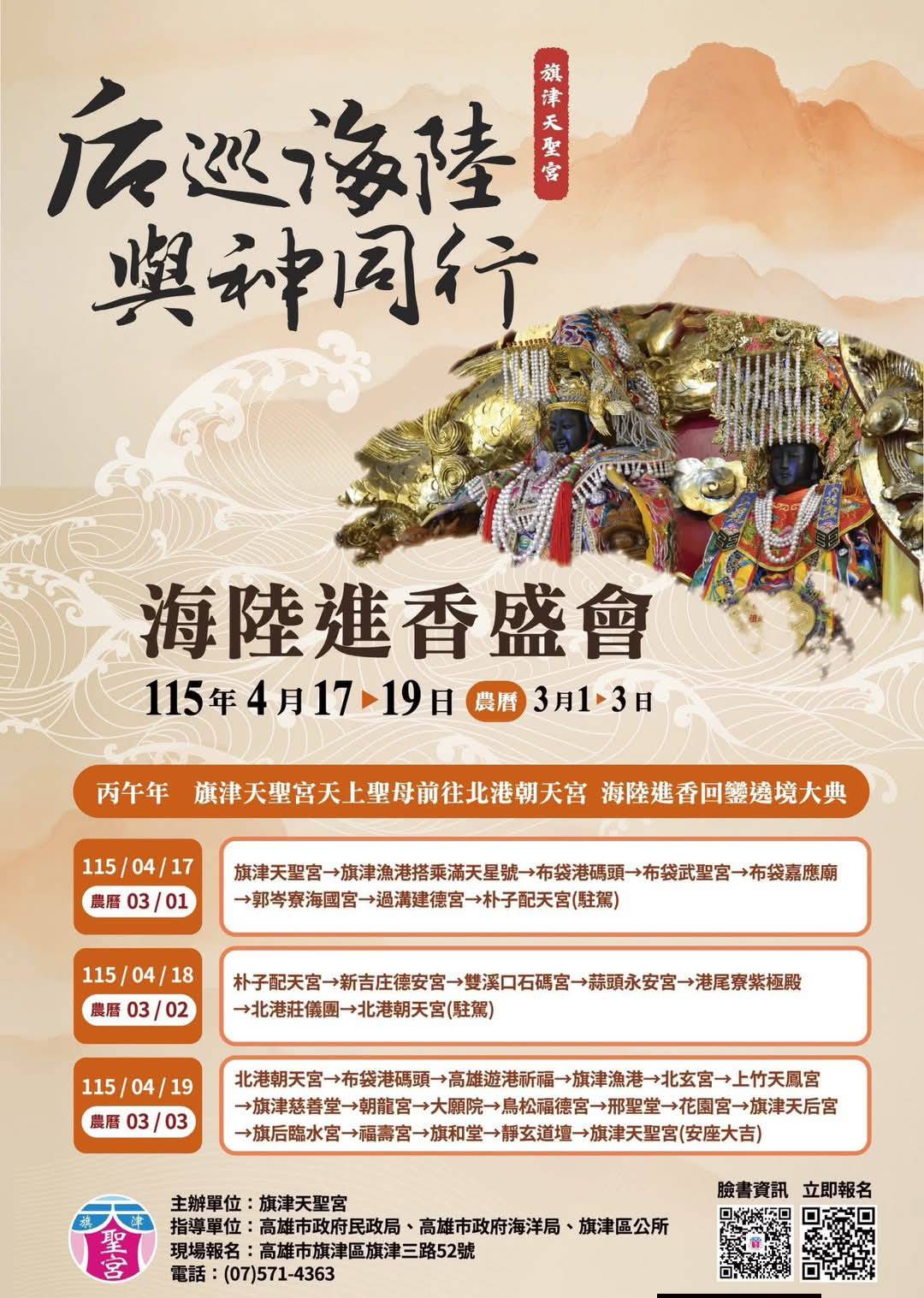 報名資訊:2026旗津天聖宮「后巡海陸,與神同行」丙午年旗津天聖宮海陸進香活動