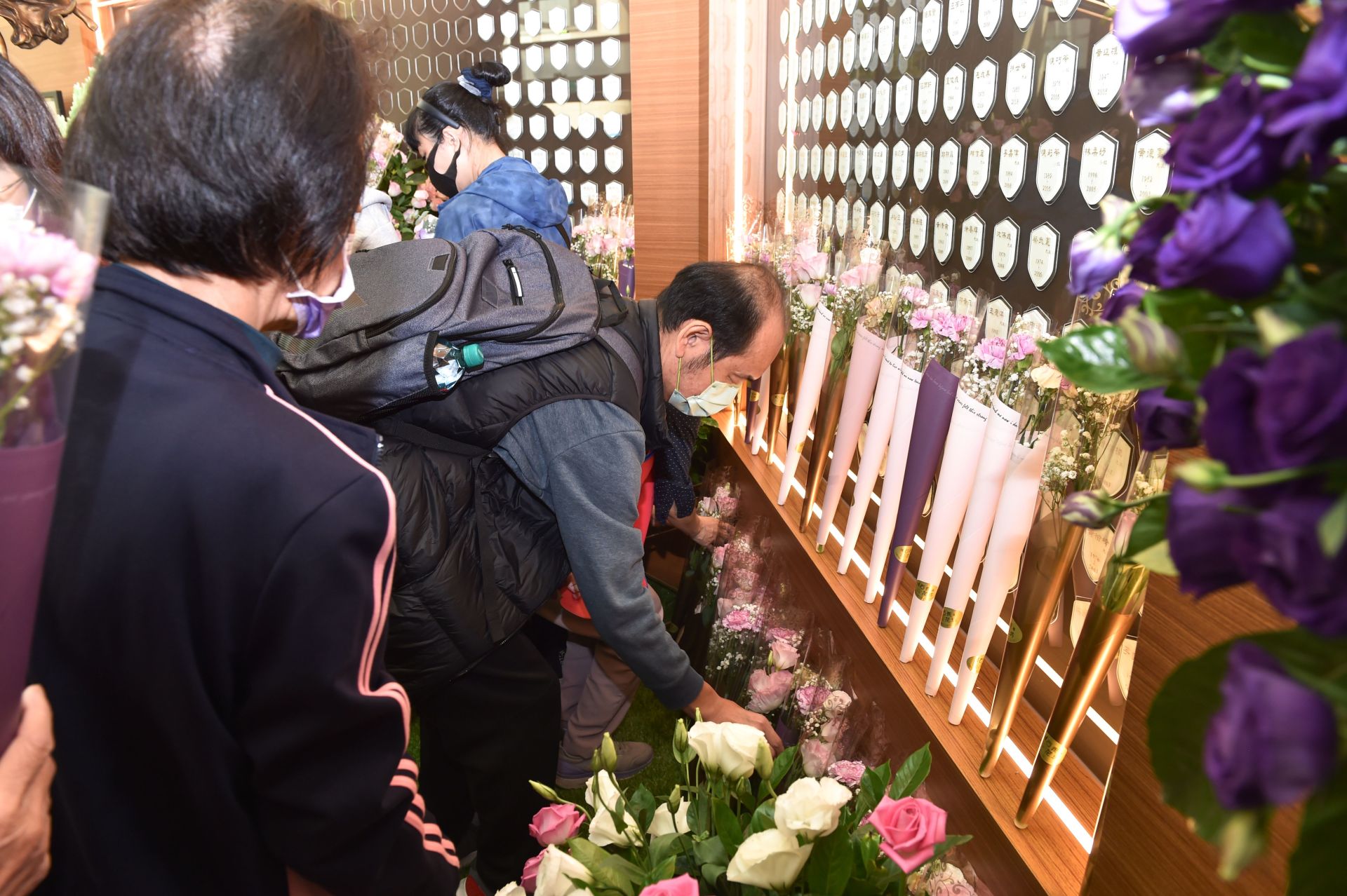▲與會者在器官捐贈紀念牆獻花。(圖/奇美醫院提供)