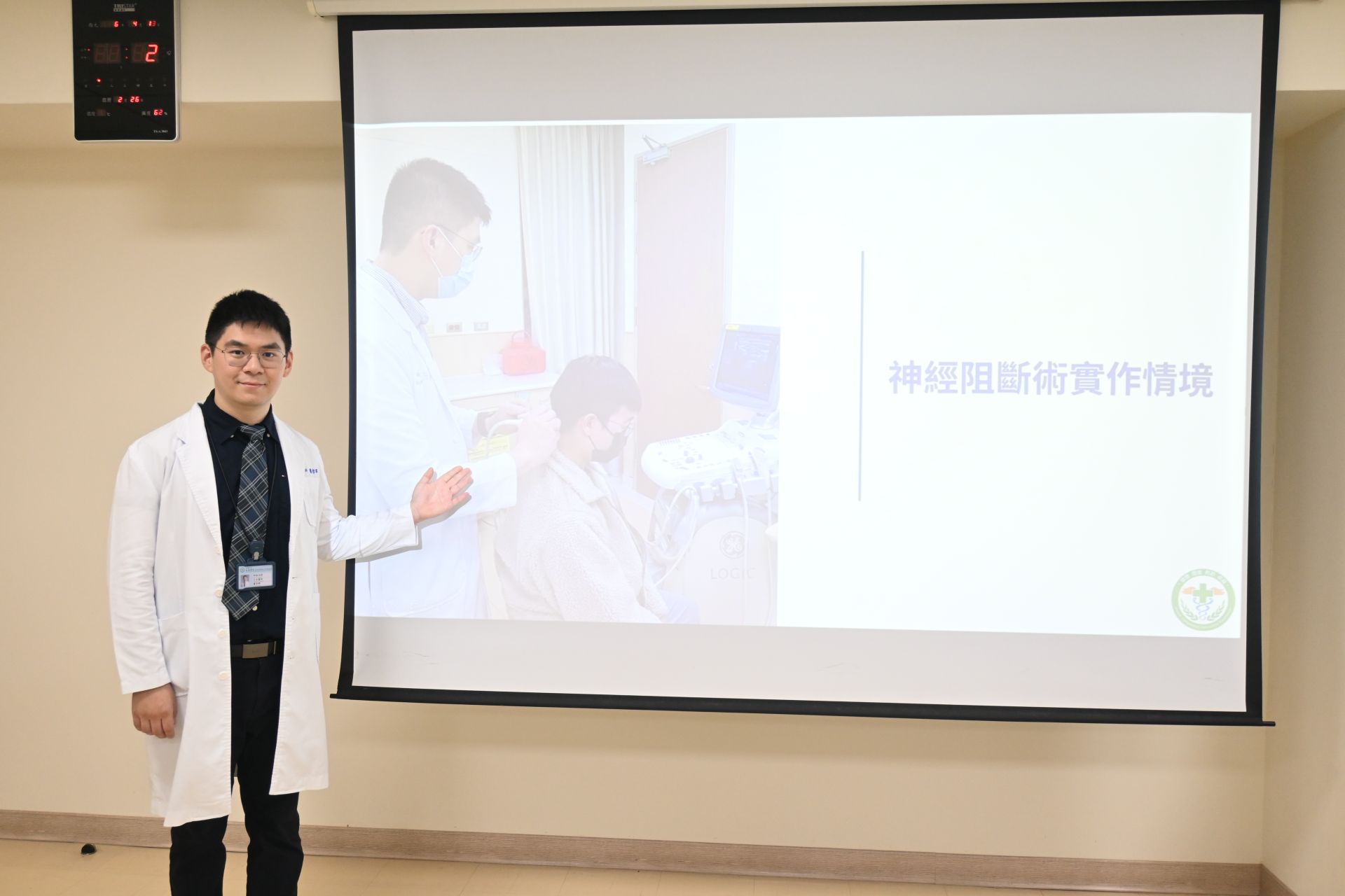 ▲安南醫院神經內科蕭哲輝醫師,說明神經阻斷術實作情境,透過高解析度超音波導引,精準治療頑固性神經痛。(圖/安南醫院提供)