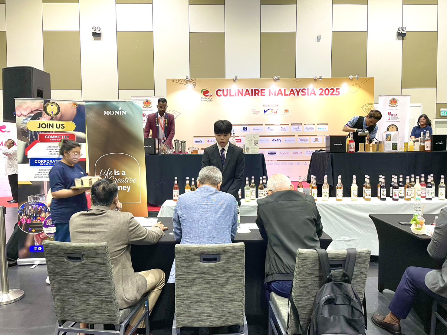 2025 馬來西亞吉隆坡 FHM 國際廚藝大賽是世界廚師協會 WACS 認證賽事之一,此次參賽者自世界各地,包含馬來西亞、台灣、新加坡、泰國、韓國等十國逾千位餐飲專業人才同台競技,每位選手需在限定時間10分鐘內完成2杯不同型態的調酒,賽制採評分制,產品風味、色澤、裝飾物、理念皆是評分重點。此外,選手需以英文介紹自己的作品與評審交流,考驗選手們的臨場反應以及穩定度,在賽前,選手們努力不懈的練習,並且要維持競賽產品的完整度,以及在國外當地使用食材的即時性,皆考驗選手的技能,也有助於選手提升對陌生機台掌控的能力。