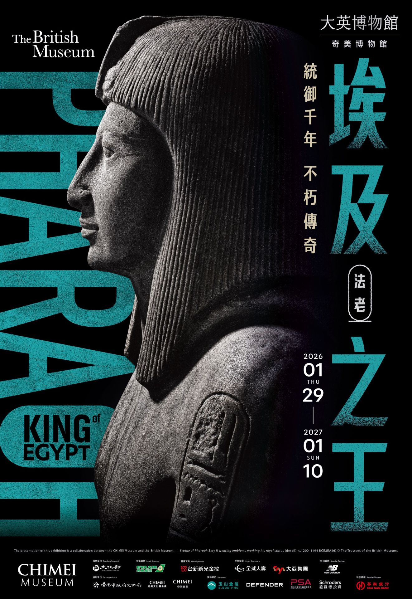 由奇美博物館與大英博物館共同主辦的《埃及之王:法老》,集結280件稀珍藏品,從黃金珠寶、陪葬珍品、神廟建築到巨型石雕,為臺灣史上最大規模的法老文物展。自消息公布以來備受各界矚目,館方也緊急於售票當天早上將早鳥票從5萬加量為10萬張,目前已全部完售。原訂開展後(2026年1月29日)啟售的一般票券,將提前至10月28日(二)中午12:00開賣,首波開放展期前5個月(2026年1月29日至6月30日)的購票,購票需指定參觀日期,全票580元、優惠票480元。