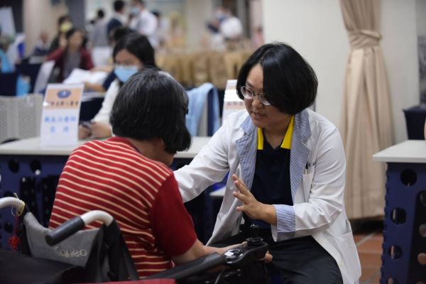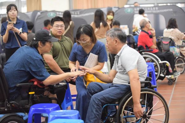圖說1:前排中間藍色洋裝長照主任陳芬婷、右:脊損協會理事長張木藤、陳麗娜市議員、社會局局長蔡宛芬、葉添浩醫師、脊損基金會董事長林進興。慈濟由王財孟師兄、方上榮師兄和林景猷師兄陪同。