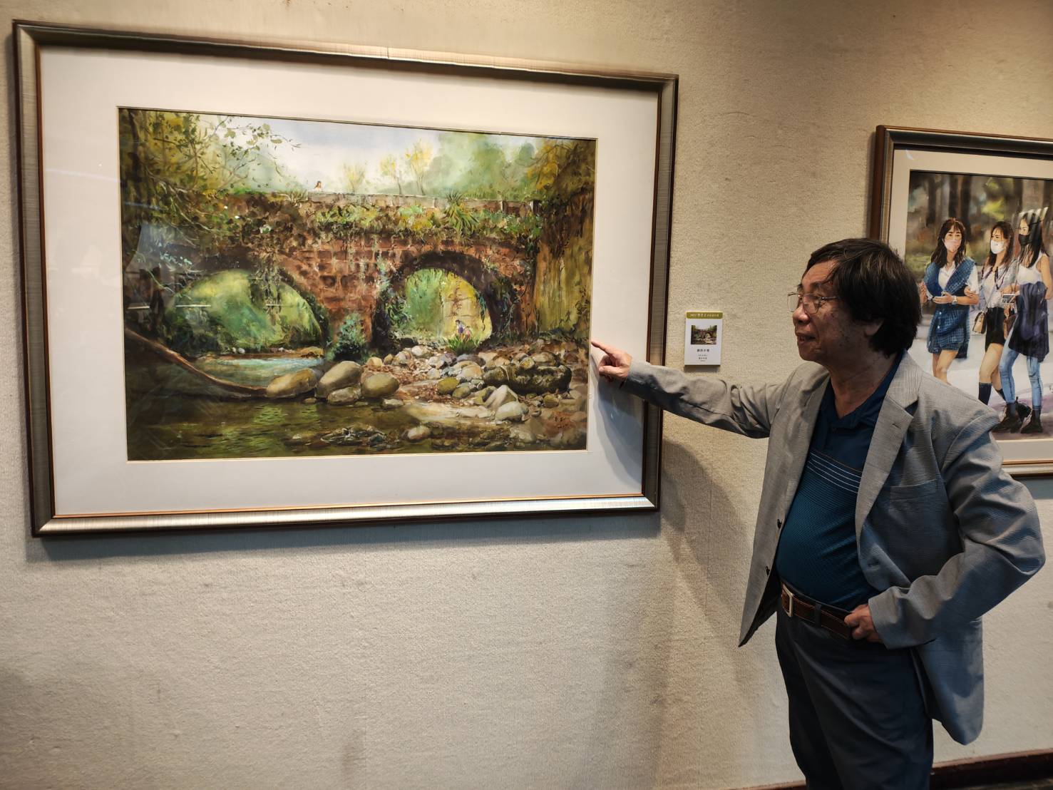 台灣南美會評議員洪啓元在台南市文化中心文物陳列館一樓觀賞郭宗正總裁展出的作品,對妙筆生花寫形神的意境盛讚有加,讓觀衆更有美的感受。