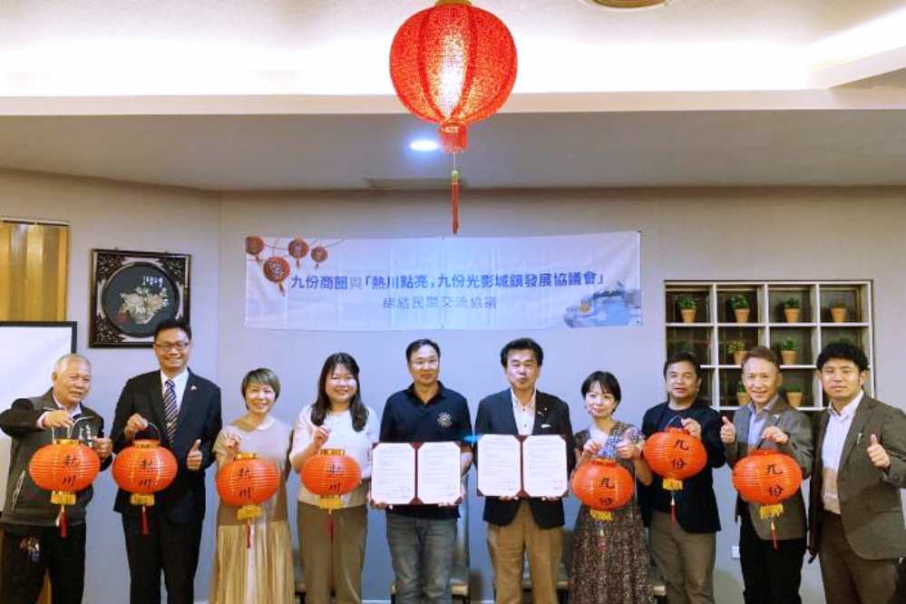 在經濟部商業發展署長期推動商圈經濟活絡發展下,今年以串聯觀光資源,並協助商圈國際交流與國內觀光發展為目標,新北市九份商圈於2025年10月1日,與日本靜岡縣東伊豆町「熱川點亮.九份光影」城鎮發展協議會正式簽訂《友好交流協定》。臺日雙方以「燈籠之光」為象徵,建立穩固的合作夥伴關係,攜手推動觀光振興、文化互訪與在地產業交流,推動臺日商圈跨域合作邁向新階段。