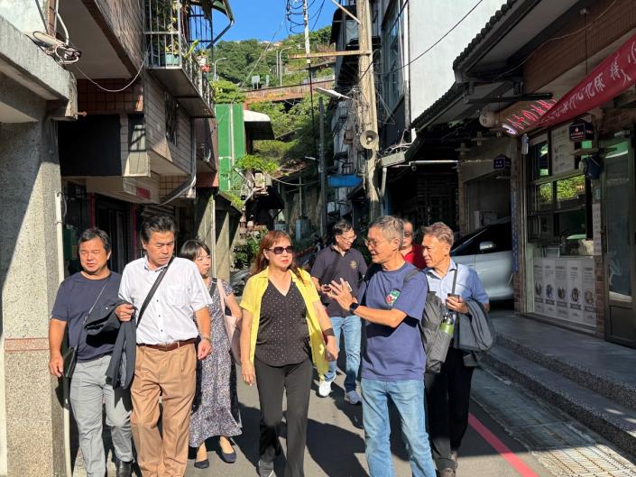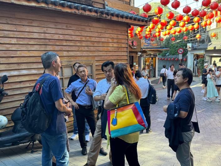 ▲九份商圈發展協會蘇宗德理事長及許仲琛執行長為日方安排街區導覽,並討論燈籠懸掛位置。(圖/九份商圈發展協會暨中衛發展中心提供)