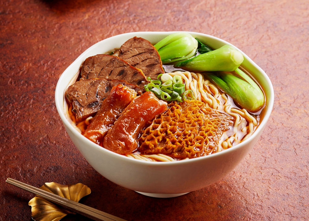 其中,許主廚因喜愛台灣牛肉麵,憑藉三十多年遍嚐全台經驗,首次嘗試以頂級牛腱、牛筋、牛肚慢火熬煮,港式口味融入濃郁醇厚的台式牛肉湯頭,搭配Q彈有勁的手工拉麵,成就人生首碗「至尊三寶牛肉麵」,完美融合在地好味與粵式精髓,用深夜的一碗麵,喚醒旅人心靈中的暖意。