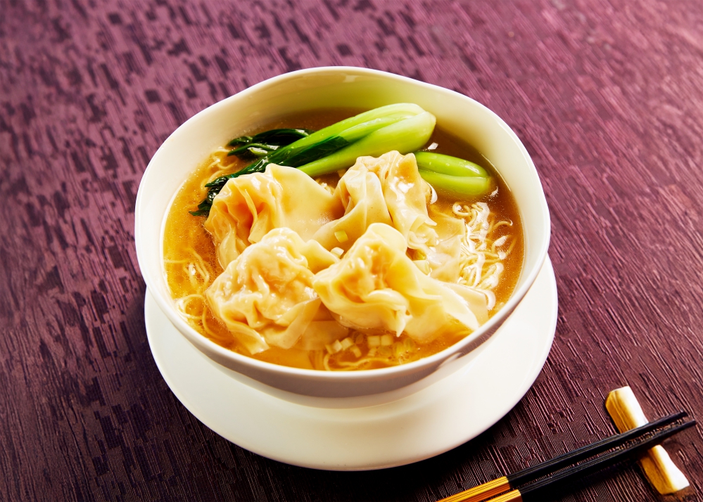 ▲以傳統竹竿壓制、工序繁複的老廣竹昇麵結合海味精華的蟹粉龍蝦雲吞麵,內餡採用龍蝦與明蝦精製的蟹粉雲吞,呈現港式雲吞麵的高端口感。(圖/圓山大飯店提供)