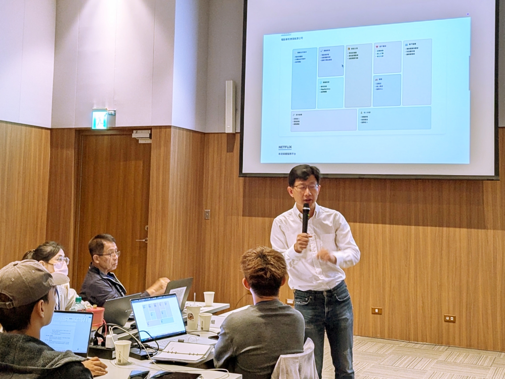 ▲以「擁抱AI,啟動數位轉型新時代」為主題的「科技農企業雙軸轉型躍升發展計畫」營運輔導工作坊,邀請臺灣大學D School兼任教授 陶韻智,陶老師帶領農企業透過商業模式九宮格了解企業的價值主張。(圖/中衛發展中心提供)