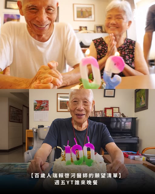 公共電視《誰來晚餐》播出十多年,紀錄過無數家庭與人生,而導演與賴啓何醫師之間的故事,則是其中最讓觀眾難忘的一段。從賴醫師 88 歲第一次走進鏡頭,到如今滿百之齡,導演陪他走過十二年歲月。這位醫師溫柔、樂觀、活得比許多年輕人都燦爛,甚至成為 YouTube 百萬流量的高齡網紅。