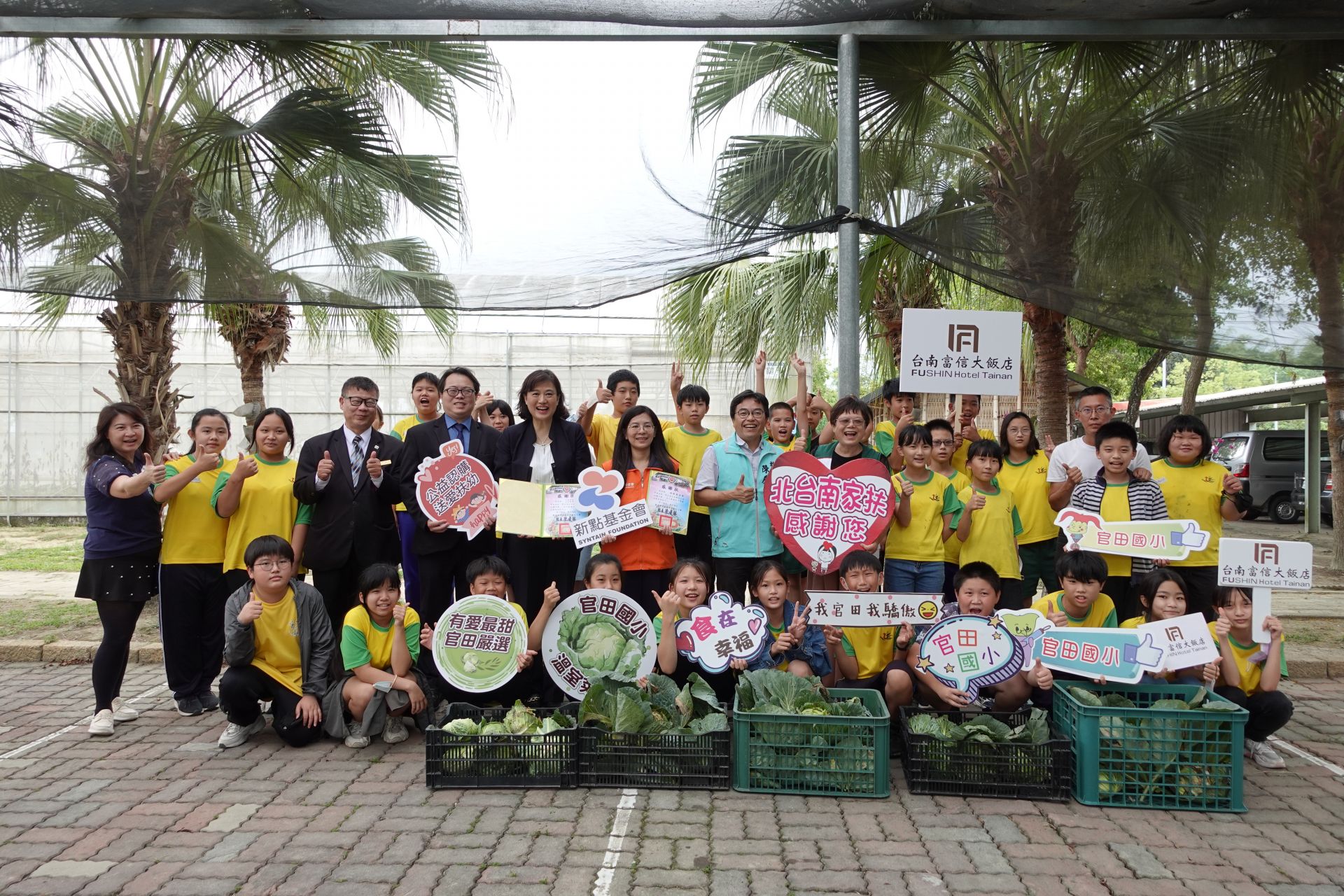 為鼓勵孩童食農教育課程之成果,並期能於愛心公益投注更多心力,新點社會福利慈善事業基金會攜手台南富信大飯店與台南富華大飯店,共同和臺南市官田國小認購師生栽種的150顆溫室無毒高麗菜,為學生成果盡一份心力。